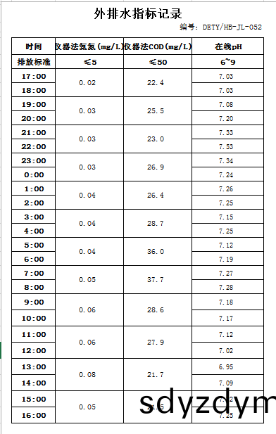 山東道恩鈦業股(gu)份有限(xian)公司2019年10月26日外(wai)排(pai)水指(zhi)標