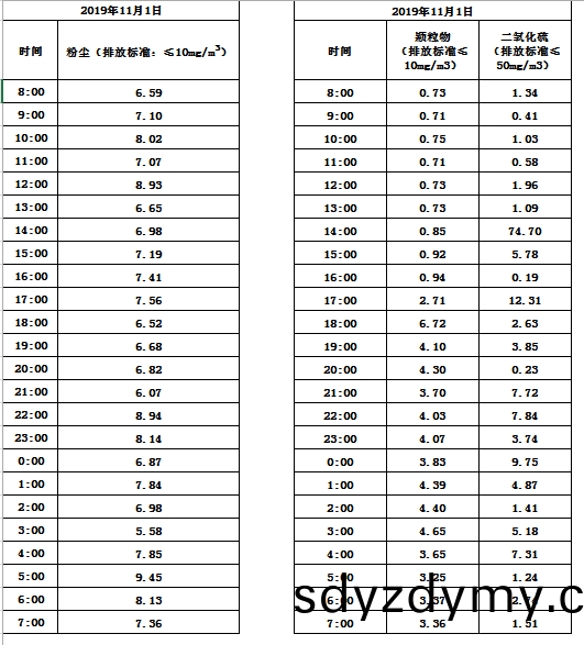山(shan)東道恩鈦業股份(fen)有(you)限(xian)公(gong)司(si)2019年(nian)11月(yue)1日(ri)煙氣(qi)數(shu)據