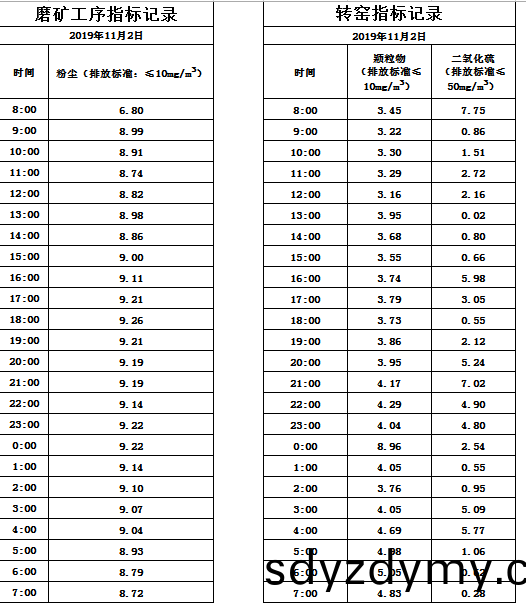 山東(dong)道(dao)恩鈦(tai)業股份有限公司2019年(nian)11月(yue)2日(ri)磨鑛(kuang)工序煙(yan)氣(qi)及(ji)轉(zhuan)窰(yao)煙氣(qi)指標數(shu)據:山(shan)東道(dao)恩(en)鈦(tai)業股(gu)份有(you)限(xian)公(gong)司(si)2019年(nian)11月2日煙氣數據
