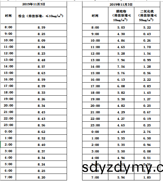 山(shan)東道恩鈦(tai)業股(gu)份(fen)有限公(gong)司2019年11月3日煙(yan)氣(qi)數(shu)據(ju)