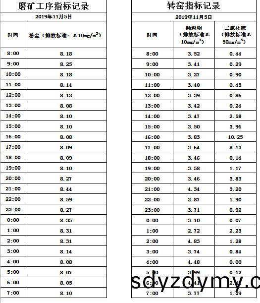 山東道恩鈦(tai)業(ye)股份(fen)有限(xian)公司2019年(nian)11月5日磨(mo)鑛工(gong)序(xu)煙(yan)氣及轉窰(yao)煙(yan)氣指標(biao)數(shu)據:山東道恩鈦(tai)業股(gu)份(fen)有(you)限公(gong)司2019年11月5日(ri)煙氣(qi)數(shu)據(ju)