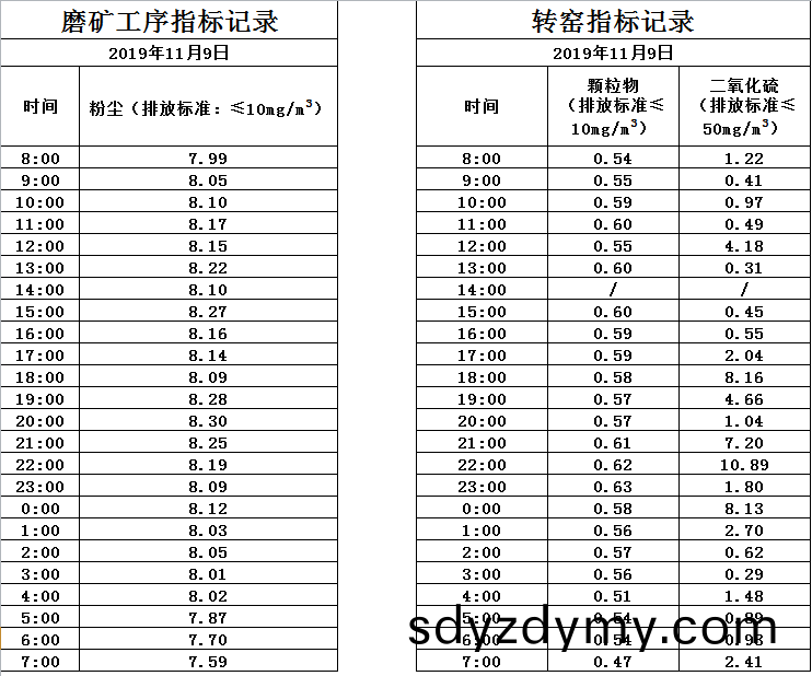 山(shan)東道(dao)恩鈦(tai)業(ye)股(gu)份有(you)限(xian)公司(si)2019年11月(yue)9日磨(mo)鑛工(gong)序煙(yan)氣(qi)及(ji)轉(zhuan)窰(yao)煙氣(qi)指(zhi)標數據(ju):山(shan)東(dong)道(dao)恩(en)鈦業股(gu)份有限公司2019年(nian)11月9日(ri)煙(yan)氣數(shu)據(ju)