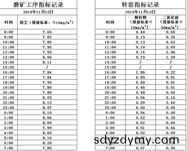 山東道(dao)恩(en)鈦(tai)業(ye)股份有限(xian)公(gong)司(si)2019年(nian)11月(yue)12日磨(mo)鑛工序(xu)煙氣及(ji)轉(zhuan)窰(yao)煙(yan)氣指(zhi)標(biao)數據:山(shan)東(dong)道(dao)恩(en)鈦業股(gu)份(fen)有(you)限(xian)公司2019年(nian)11月12日(ri)煙(yan)氣(qi)數(shu)據(ju)