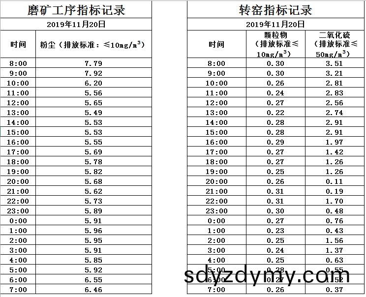 山(shan)東道(dao)恩(en)鈦(tai)業(ye)股(gu)份(fen)有限公(gong)司2019年11月20日磨鑛工序煙氣及轉(zhuan)窰(yao)煙(yan)氣指(zhi)標數據:山(shan)東道恩鈦業股份(fen)有限(xian)公(gong)司(si)2019年(nian)11月20日煙氣(qi)數據