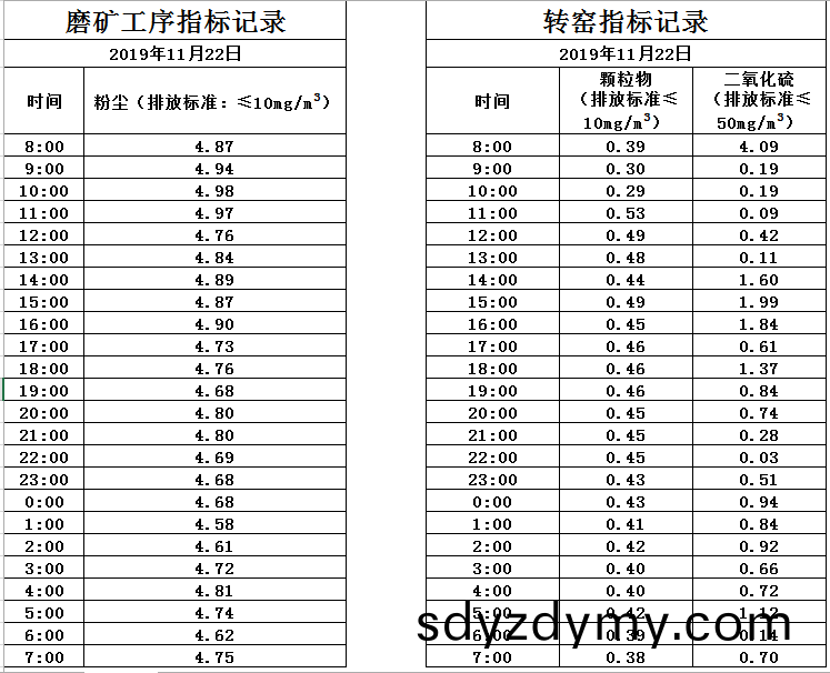 山東道恩(en)鈦(tai)業股份(fen)有(you)限(xian)公司(si)2019年11月(yue)22日磨鑛工序煙(yan)氣及轉窰(yao)煙(yan)氣指(zhi)標(biao)數據(ju):山(shan)東(dong)道(dao)恩鈦業(ye)股份(fen)有(you)限(xian)公(gong)司2019年(nian)11月(yue)22日煙氣數據(ju)