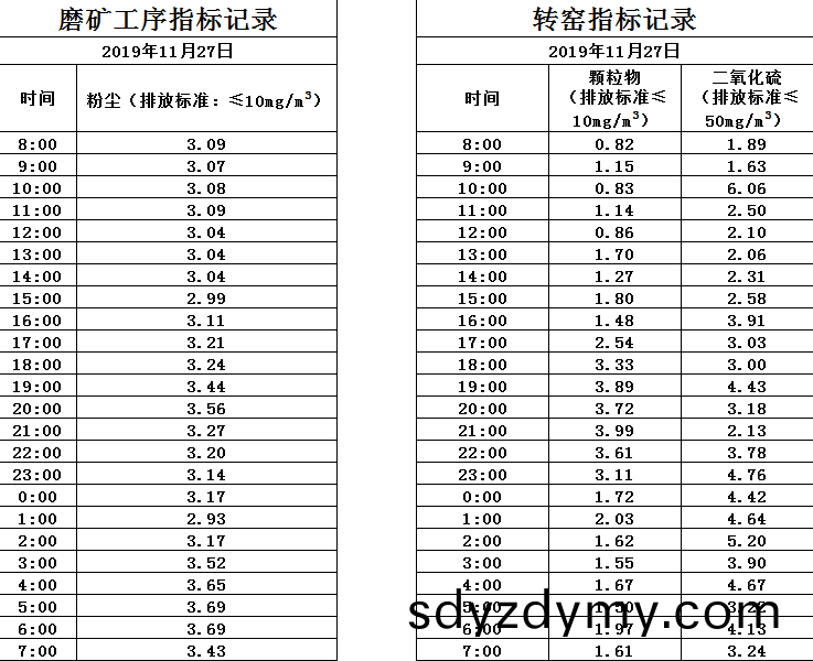 山東道(dao)恩鈦業(ye)股份(fen)有限公司2019年(nian)11月(yue)27日(ri)磨鑛工(gong)序煙(yan)氣(qi)及(ji)轉窰煙(yan)氣(qi)指(zhi)標數(shu)據:山(shan)東(dong)道(dao)恩(en)鈦業股份(fen)有(you)限(xian)公(gong)司(si)2019年(nian)11月27日煙氣數(shu)據(ju)
