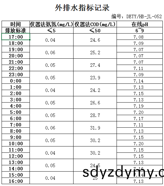 山(shan)東(dong)道恩鈦(tai)業(ye)股份有(you)限(xian)公(gong)司(si)2019年12月1日(ri)外(wai)排(pai)水(shui)指標