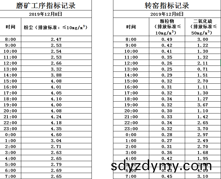 山東(dong)道恩鈦業股(gu)份(fen)有(you)限(xian)公(gong)司2019年(nian)12月(yue)8日磨鑛(kuang)工序煙(yan)氣(qi)及(ji)轉(zhuan)窰煙氣(qi)指(zhi)標(biao)數據:山(shan)東(dong)道(dao)恩鈦(tai)業(ye)股份有(you)限公司(si)2019年12月8日煙氣數據
