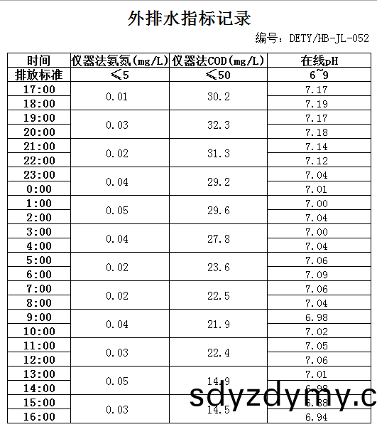 山東(dong)道(dao)恩鈦(tai)業(ye)股份有限公司2019年12月12日(ri)外排(pai)水指標(biao)數(shu)據: 山(shan)東道(dao)恩鈦(tai)業(ye)股份(fen)有限(xian)公(gong)司2019年(nian)12月12日外排(pai)水指標(biao)