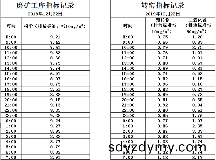 山東道恩(en)鈦(tai)業(ye)股(gu)份有(you)限公司(si)2019年(nian)12月(yue)22日(ri)磨(mo)鑛(kuang)工序(xu)煙(yan)氣(qi)及轉(zhuan)窰煙氣指(zhi)標(biao)數據: 山(shan)東(dong)道恩鈦(tai)業股份有限公司2019年(nian)12月22日(ri)煙(yan)氣數據(ju)
