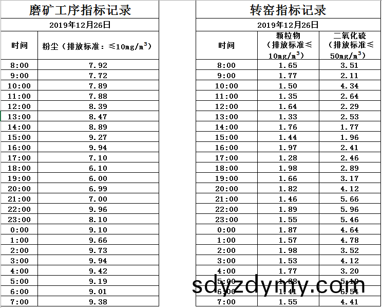 山東(dong)道(dao)恩鈦業股(gu)份有限公(gong)司2019年(nian)12月(yue)26日磨鑛(kuang)工序(xu)煙氣(qi)及(ji)轉窰煙氣(qi)指(zhi)標數據(ju): 山東道(dao)恩(en)鈦業(ye)股(gu)份有限公(gong)司2019年(nian)12月(yue)26日煙(yan)氣(qi)數(shu)據(ju)