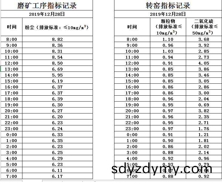 山東(dong)道恩鈦業股(gu)份有限公(gong)司(si)2019年(nian)12月(yue)28日(ri)磨鑛(kuang)工(gong)序(xu)煙氣(qi)及轉窰煙氣指標(biao)數(shu)據:山(shan)東道恩(en)鈦業股份(fen)有(you)限(xian)公司2019年(nian)12月28日(ri)煙(yan)氣數據(ju)
