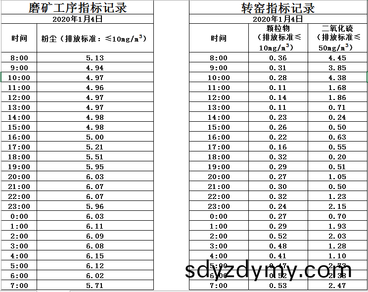 山(shan)東道恩(en)鈦業(ye)股份(fen)有(you)限(xian)公司2020年1月(yue)4日磨(mo)鑛工序(xu)煙(yan)氣(qi)及(ji)轉(zhuan)窰煙氣指標數據:山(shan)東道恩(en)鈦業(ye)股份(fen)有限(xian)公(gong)司(si)2020年(nian)1月(yue)4日(ri)煙氣數(shu)據(ju)