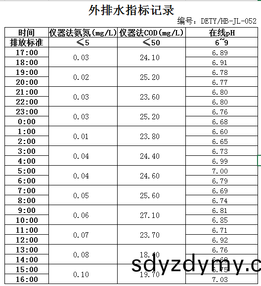 山(shan)東(dong)道恩鈦業(ye)股(gu)份(fen)有(you)限公(gong)司2020年(nian)1月4日(ri)外(wai)排(pai)水(shui)指(zhi)標(biao)數據(ju): 山東(dong)道恩鈦業股份(fen)有(you)限公(gong)司(si)2020年(nian)1月4日外(wai)排水(shui)指(zhi)標(biao)