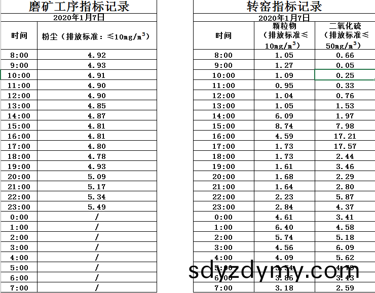 山東(dong)道恩(en)鈦(tai)業(ye)股(gu)份有限(xian)公(gong)司2020年(nian)1月7日(ri)磨(mo)鑛工(gong)序煙氣及轉(zhuan)窰煙(yan)氣(qi)指(zhi)標(biao)數據: 山(shan)東(dong)道恩(en)鈦(tai)業(ye)股份(fen)有限(xian)公司2020年(nian)1月7日煙(yan)氣(qi)數據(ju)