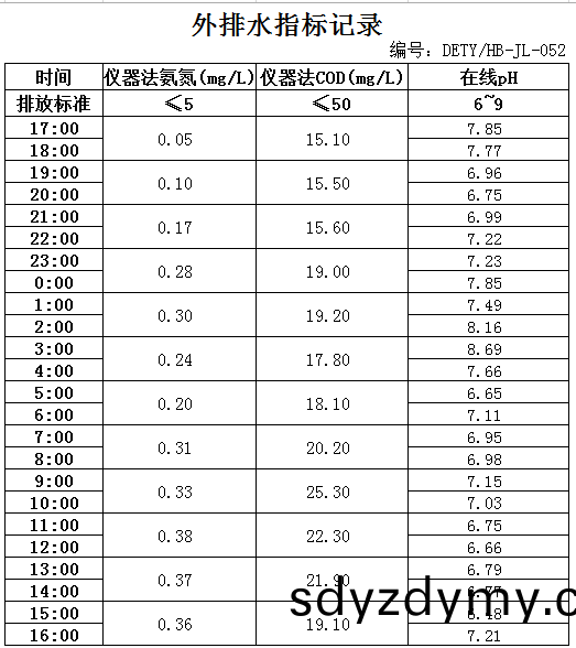 山東(dong)道恩鈦(tai)業(ye)股份(fen)有(you)限(xian)公(gong)司2020年(nian)1月6日(ri)外(wai)排水(shui)指(zhi)標