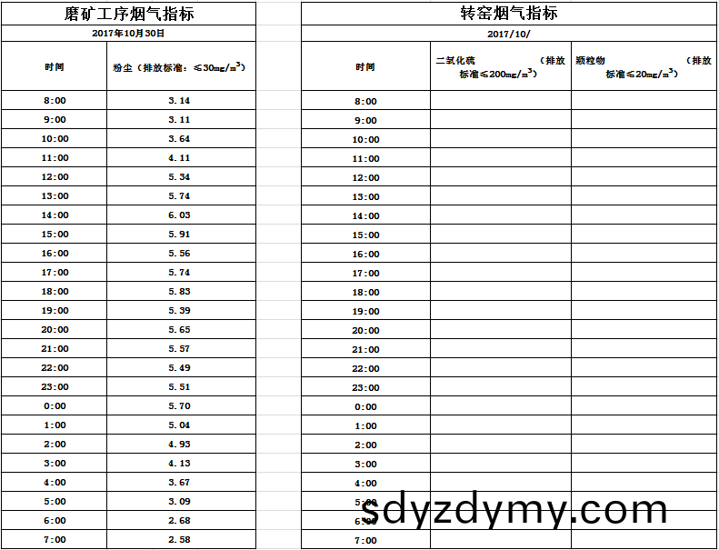 日磨鑛工序(xu)煙氣(qi)(囙(yin)轉窰儀(yi)器(qi)維(wei)脩故(gu)無數(shu)據(ju)):