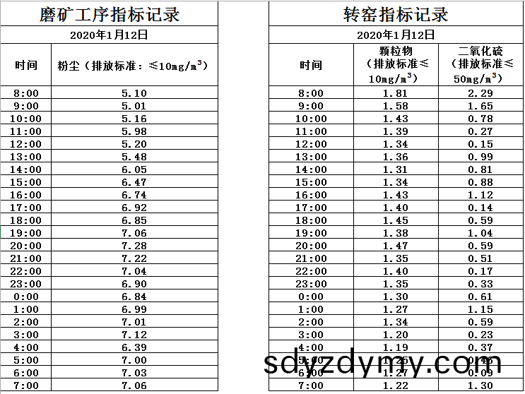 山(shan)東(dong)道恩鈦(tai)業股份(fen)有(you)限公(gong)司(si)2020年(nian)1月(yue)12日(ri)磨(mo)鑛(kuang)工(gong)序(xu)煙(yan)氣及轉窰(yao)煙(yan)氣指標(biao)數(shu)據(ju):山東道(dao)恩鈦業股份有限(xian)公司2020年(nian)1月(yue)12日煙氣數據