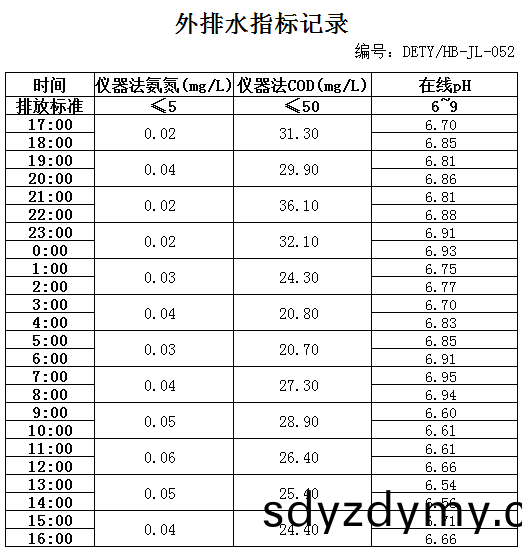 山(shan)東道恩鈦(tai)業股份(fen)有(you)限公(gong)司2020年1月(yue)12日外排水指標