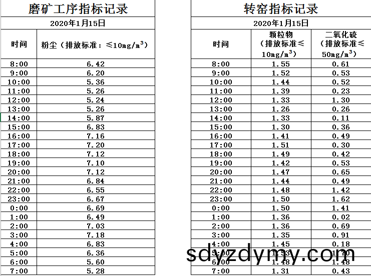 山東(dong)道(dao)恩鈦(tai)業股份有(you)限(xian)公(gong)司(si)2020年(nian)1月15日(ri)磨(mo)鑛工(gong)序煙氣(qi)及轉(zhuan)窰(yao)煙氣指標(biao)數據(ju): 山(shan)東道恩鈦業(ye)股份(fen)有限(xian)公(gong)司2020年1月15日煙氣(qi)數(shu)據(ju)