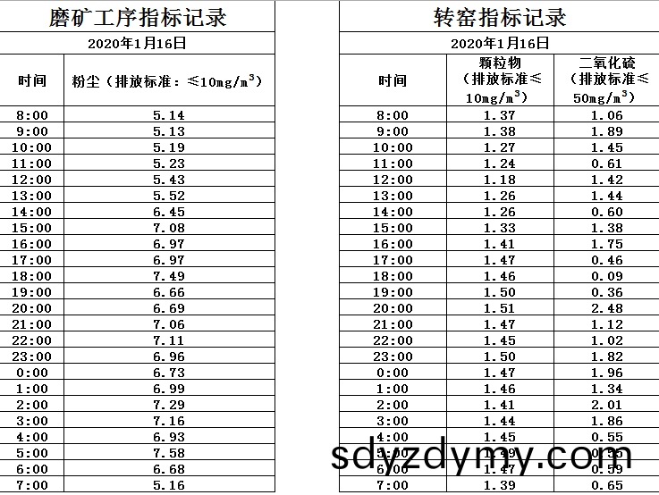 山(shan)東道(dao)恩鈦業股份有限(xian)公司2020年1月16日磨鑛(kuang)工(gong)序煙(yan)氣(qi)及(ji)轉窰煙(yan)氣(qi)指(zhi)標數(shu)據(ju): 山(shan)東道(dao)恩(en)鈦業(ye)股份有限(xian)公(gong)司2020年1月(yue)16日(ri)煙氣(qi)數(shu)據
