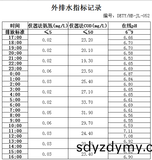 山(shan)東(dong)道(dao)恩(en)鈦業(ye)股(gu)份有(you)限(xian)公(gong)司(si)2020年(nian)1月(yue)13日外(wai)排(pai)水(shui)指(zhi)標(biao)數(shu)據(ju): 山東道(dao)恩(en)鈦業(ye)股(gu)份有(you)限(xian)公(gong)司2020年1月13日外排水(shui)指標