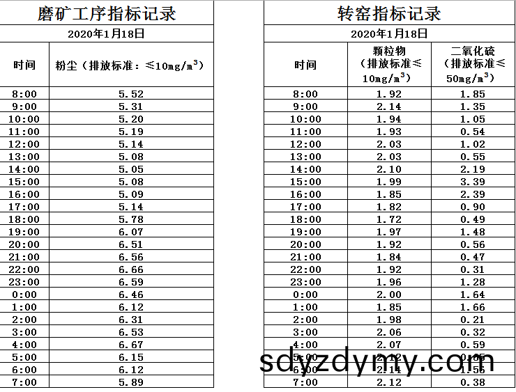 山(shan)東(dong)道(dao)恩(en)鈦業(ye)股(gu)份(fen)有限公(gong)司(si)2020年(nian)1月18日(ri)磨鑛工(gong)序(xu)煙(yan)氣(qi)及轉(zhuan)窰(yao)煙(yan)氣(qi)指(zhi)標數據:山(shan)東道恩(en)鈦業(ye)股份(fen)有(you)限(xian)公司(si)2020年(nian)1月18日(ri)煙氣(qi)數(shu)據