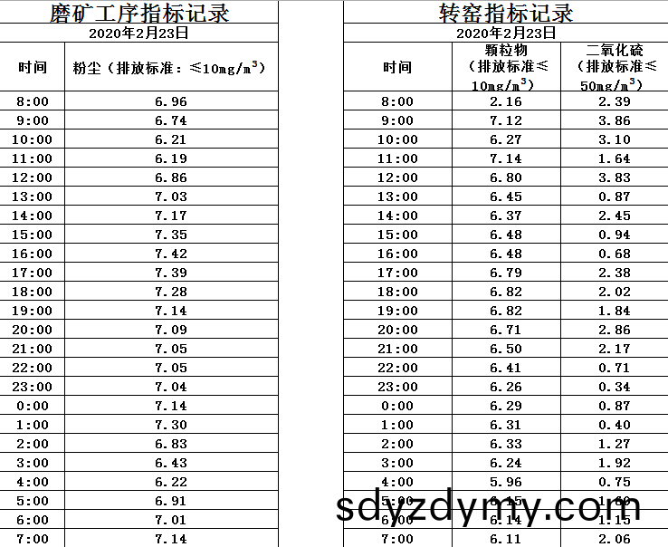 山(shan)東道(dao)恩(en)鈦業股(gu)份有(you)限(xian)公(gong)司2020年(nian)2月23磨鑛(kuang)工序煙(yan)氣及轉(zhuan)窰煙(yan)氣(qi)指(zhi)標(biao)數(shu)據(ju):