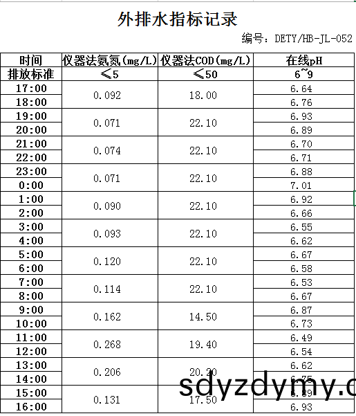 山(shan)東(dong)道恩鈦(tai)業(ye)股份有限(xian)公司2020年(nian)2月(yue)24日外排(pai)水(shui)指(zhi)標(biao)數(shu)據: