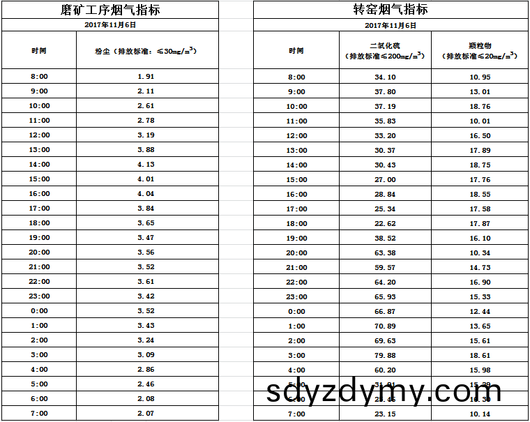 山東道恩鈦業股(gu)份有(you)限(xian)公司(si)2017年11月06日(ri)磨鑛(kuang)工序(xu)煙(yan)氣及(ji)轉(zhuan)窰煙(yan)氣指(zhi)標(biao)數據:山東道恩鈦(tai)業股份有(you)限(xian)公司2017年(nian)11月(yue)06日磨(mo)鑛工序煙氣及轉(zhuan)窰(yao)煙(yan)氣(qi)指標數(shu)據(ju):