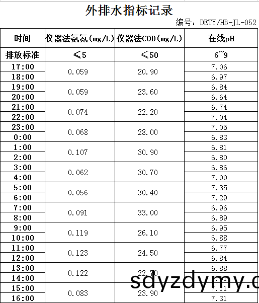 山(shan)東道(dao)恩鈦業(ye)股份有限(xian)公(gong)司2020年(nian)3月4日外排(pai)水(shui)指標數(shu)據(ju):