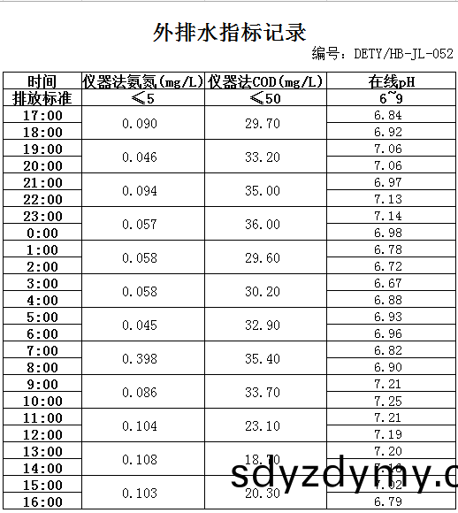 山東(dong)道恩(en)鈦(tai)業股(gu)份(fen)有限(xian)公(gong)司2020年(nian)3月11日(ri)外(wai)排(pai)水(shui)指標(biao)