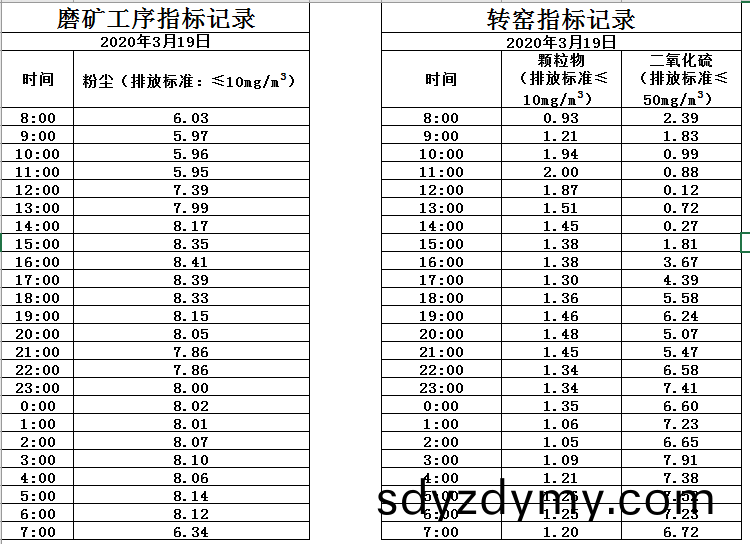 山(shan)東道恩(en)鈦(tai)業股份有限(xian)公(gong)司2020年3月19磨鑛工序(xu)煙(yan)氣及(ji)轉(zhuan)窰(yao)煙氣指標數據: