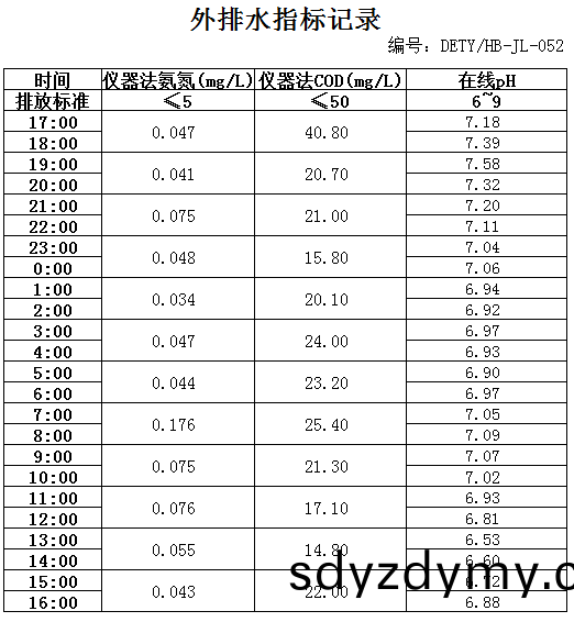 山東(dong)道(dao)恩鈦(tai)業股(gu)份有限(xian)公司2020年(nian)3月23日(ri)外排水(shui)指標(biao)數(shu)據(ju):