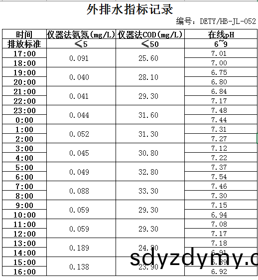 山(shan)東(dong)道恩鈦業股(gu)份(fen)有限公司(si)2020年(nian)4月(yue)6日(ri)外(wai)排(pai)水(shui)指標數(shu)據: