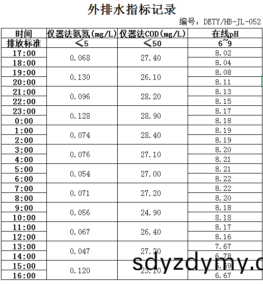 山(shan)東道(dao)恩(en)鈦業(ye)股(gu)份(fen)有(you)限(xian)公司2020年4月8日外(wai)排(pai)水指標(biao)數(shu)據: