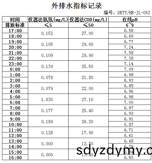 山東(dong)道(dao)恩鈦業股份(fen)有(you)限(xian)公司(si)2020年(nian)5月(yue)5日外排水(shui)指標(biao)數據: