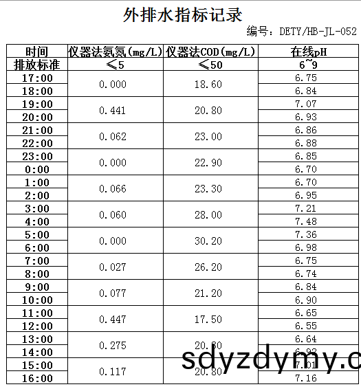 山(shan)東(dong)道(dao)恩(en)鈦業股份有(you)限(xian)公司2020年(nian)5月(yue)6日(ri)外(wai)排(pai)水(shui)指標數據(ju):