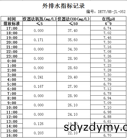 山東(dong)道恩鈦業股份(fen)有(you)限(xian)公司2020年(nian)5月19日(ri)外(wai)排(pai)水指(zhi)標