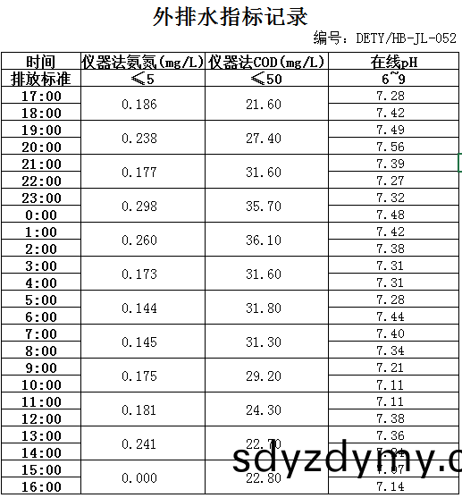 山東(dong)道(dao)恩(en)鈦(tai)業股(gu)份有限(xian)公(gong)司2020年(nian)5月(yue)22日(ri)外(wai)排水(shui)指(zhi)標數據(ju):
