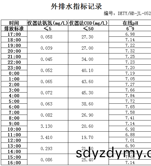 山(shan)東道(dao)恩(en)鈦(tai)業(ye)股份有(you)限(xian)公司2020年(nian)6月28日(ri)外排水指(zhi)標(biao)數(shu)據: