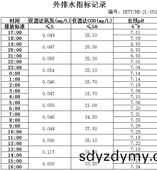 山東道(dao)恩鈦業股(gu)份(fen)有(you)限(xian)公司(si)2020年6月30日外(wai)排水(shui)指標數(shu)據: