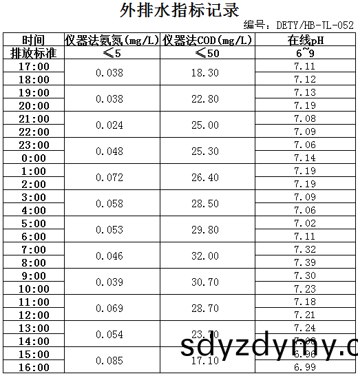 山(shan)東(dong)道恩鈦(tai)業股(gu)份(fen)有(you)限公司(si)2020年7月5日(ri)外排水(shui)指標數(shu)據: