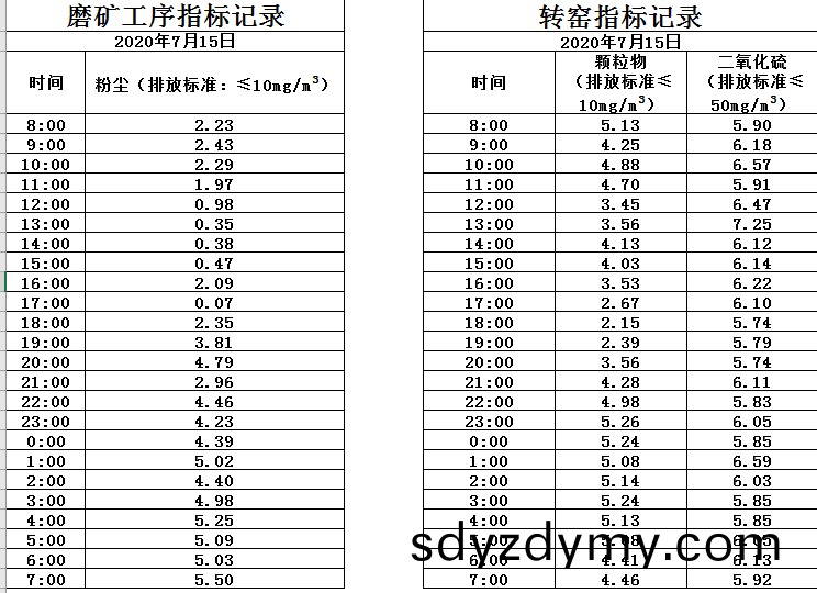 山東道恩鈦業(ye)股份有限(xian)公司2020年(nian)7月(yue)15磨鑛(kuang)工序(xu)煙(yan)氣(qi)及轉窰(yao)煙(yan)氣(qi)指標數(shu)據: