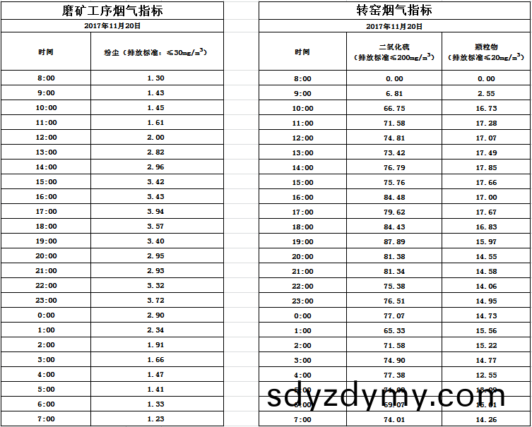 山(shan)東(dong)道恩鈦業(ye)股(gu)份有限(xian)公司(si)2017年11月20日磨鑛(kuang)工(gong)序煙氣及(ji)轉(zhuan)窰煙(yan)氣指標(biao)數(shu)據(ju):山(shan)東道(dao)恩(en)鈦(tai)業(ye)股(gu)份有限公(gong)司(si)2017年11月(yue)20日(ri)磨(mo)鑛工序煙氣及轉(zhuan)窰煙氣指(zhi)標數據: