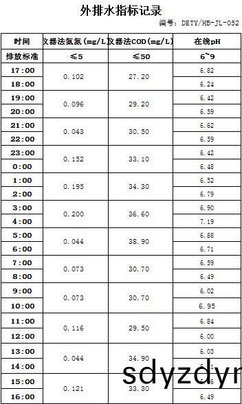 山(shan)東(dong)道(dao)恩鈦業(ye)股份有限(xian)公司2020年(nian)8月5日外(wai)排(pai)水(shui)指標數據(ju):