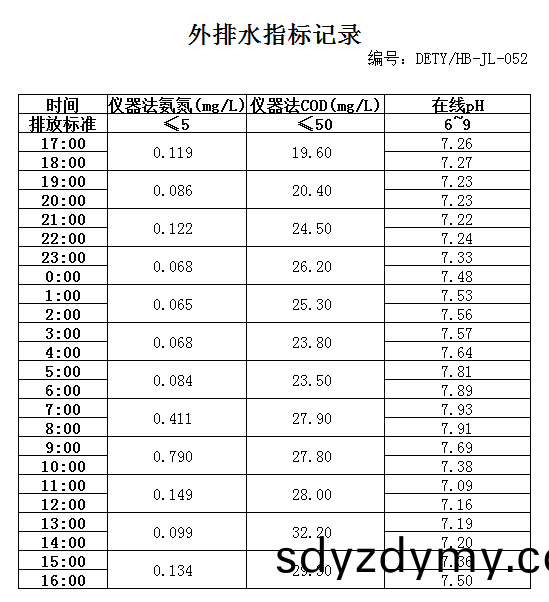 山東(dong)道恩鈦業股份有(you)限公司(si)2020年(nian)8月(yue)22日外(wai)排水(shui)指標(biao)數據: