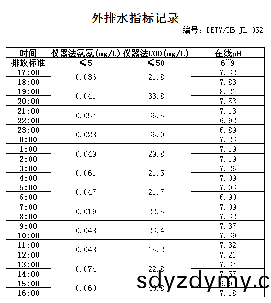 山(shan)東(dong)道恩(en)鈦業(ye)股份(fen)有(you)限(xian)公(gong)司(si)2020年(nian)9月(yue)17日(ri)外排水(shui)指(zhi)標(biao)數據: