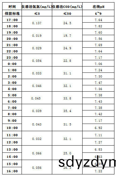 山(shan)東道(dao)恩(en)鈦(tai)業(ye)股份(fen)有(you)限公(gong)司2020年10月23日外排水指標(biao)數據: