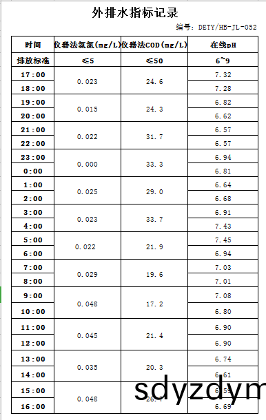山(shan)東(dong)道(dao)恩鈦業股(gu)份有(you)限公司(si)2020年10月26日(ri)外(wai)排水指(zhi)標(biao)數據(ju):
